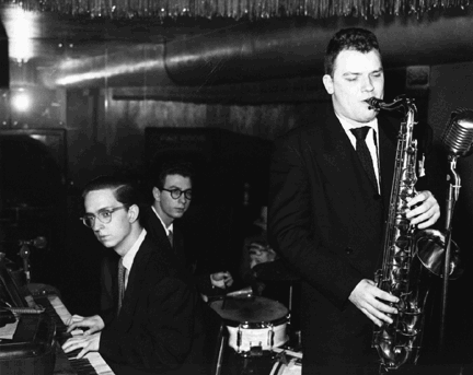 Many people know that I used to play the piano for a living, in taverns, for dances, weddings, bar mitzvas, Safeway employees Christmas parties, and so on. Here is a picture of the Bobby Laine Trio, circa 1950 (Bobby Laine, tenor; Dominic Jaconetti, drums; Howie Becker, piano), performing at the 504 Club, which was located at 504 W. 63rd St. in Chicago. |